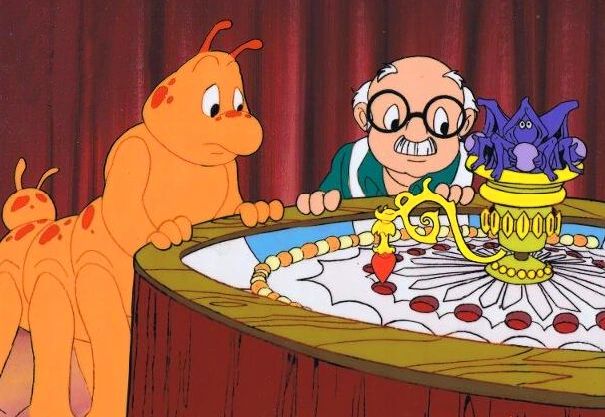The Wizard instructs the group to gather around a strange looking table with numbers and spinners on it. He begins to talk to the "spirits" who will tell him where Princess Aruzia is. As he asks, the Wizard presses on various buttons and pedals beneath his feet. These drive the spinner in the middle of the table, spelling out the word Gutang.