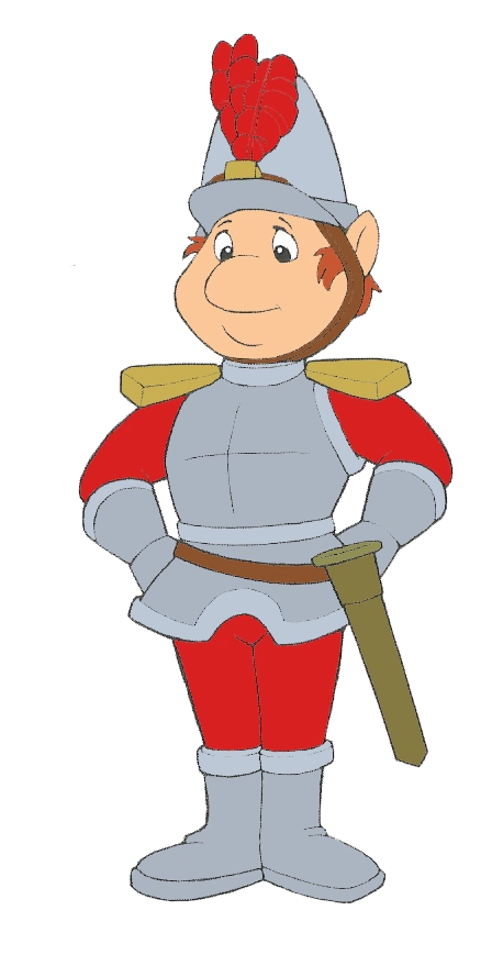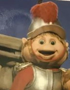 In The Adventures of Teddy Ruxpin, he appears largely the same, with his hair being bright orange. In mostly earlier episodes of the cartoon, he has some dark green on his hat and shoulder pads. In later appearances, he has golden shoulder pads and a golden crest on the middle of his hat, some dark green still being left in.